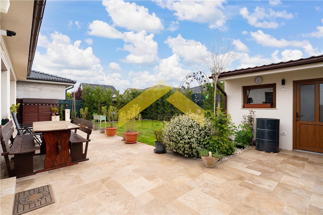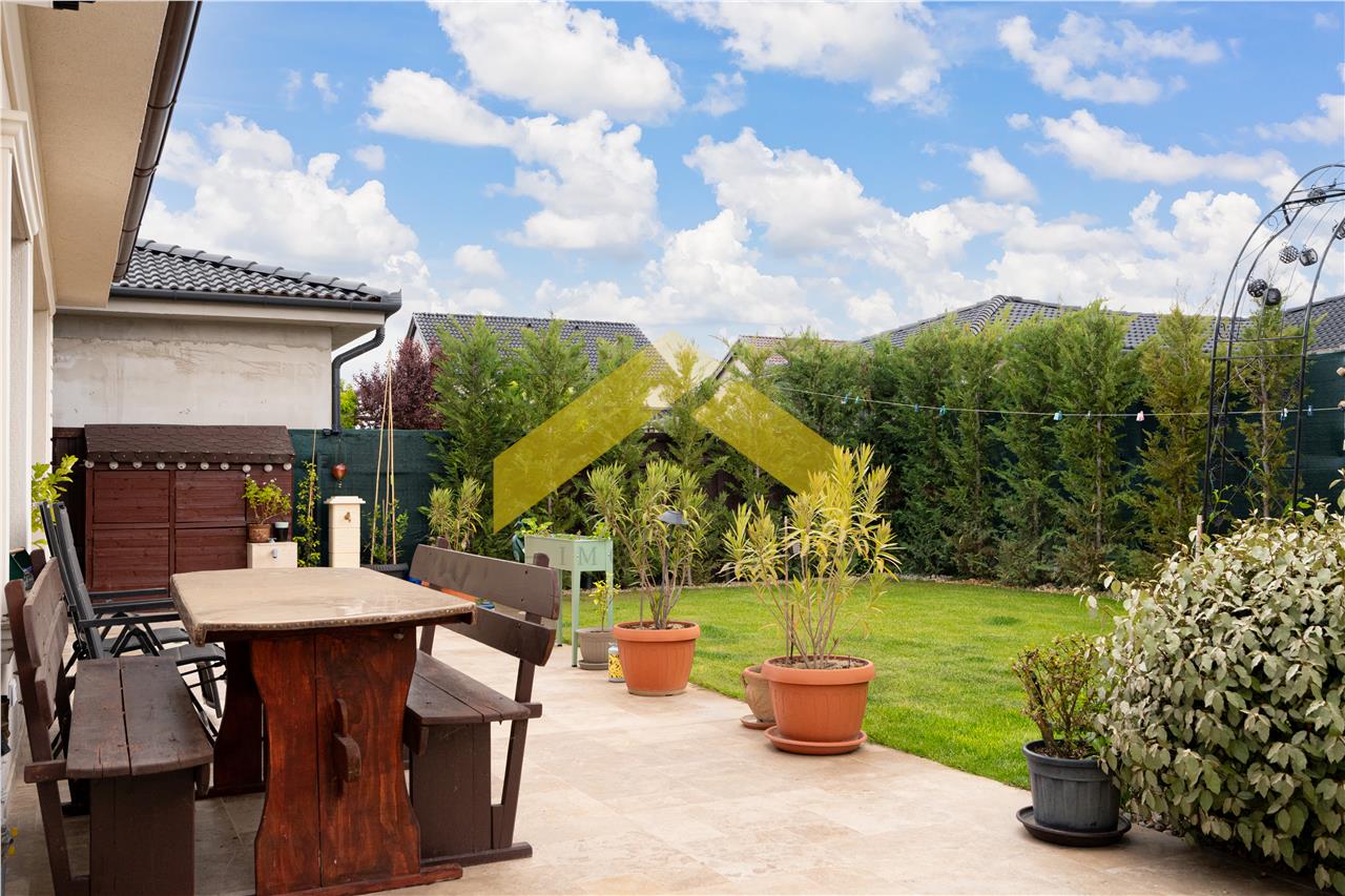 In curte se afla o anexa pentru depozitare, plante ornamentale si o terasa acoperita.