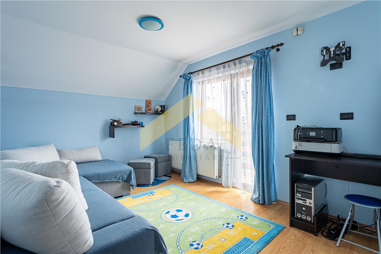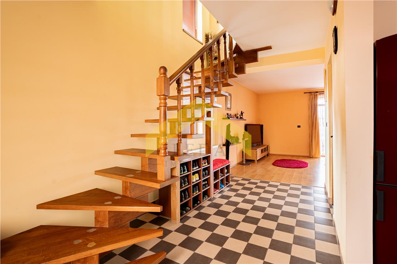 Casa este izolata termic si are o suprafata construita de 168 mp, o suprafata utila de 120 mp si este compusa din :
