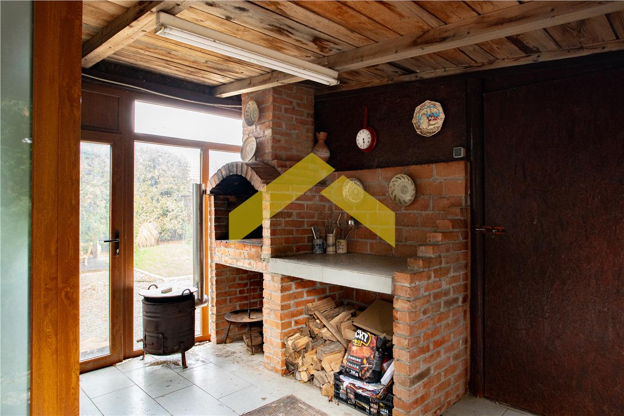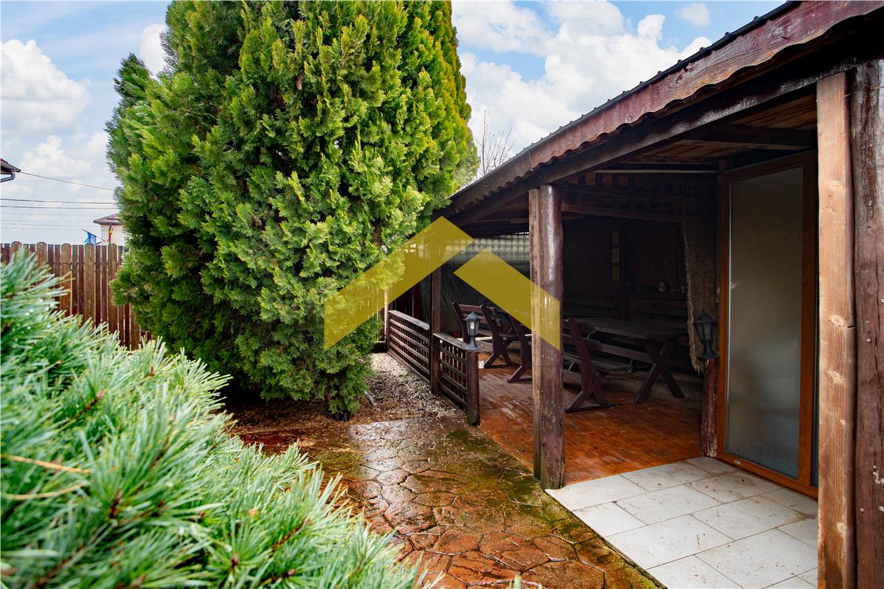 -o terasa mare acoperita cu loc de luat masa si un gratar zidit